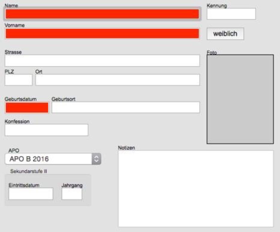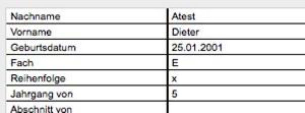 Der Schlüssel „Name, Vorname“ ist als Unterscheidungsmerkmal zwischen verschiedenen Schülern nicht so sehr geeignet, weil es durchaus zwei verschiedene Schüler gleichen Namens geben kann. Dennoch kann es Importdaten geben, in denen nur diese Schlüsselwerte zur Verfügung stehen.