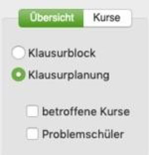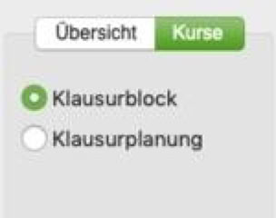 Sie wählen aus, ob Sie eine Übersicht über die vollständige Klausurplanung oder nur über den gerade aktuellen Klausurblock sehen wollen.
