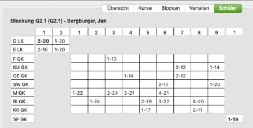 Besonders interessant ist diese Übersicht für den Fall, dass die Schülerin oder der Schüler umwählen muss oder noch nicht verteilt wurde.
