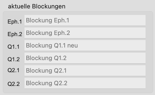 Sie wählen eine Blockung aus der Liste der Blockungen und bewegen sie bei gedrückter Optionstaste per Drag and Drop in den passenden Slot der aktuellen Blockungen.