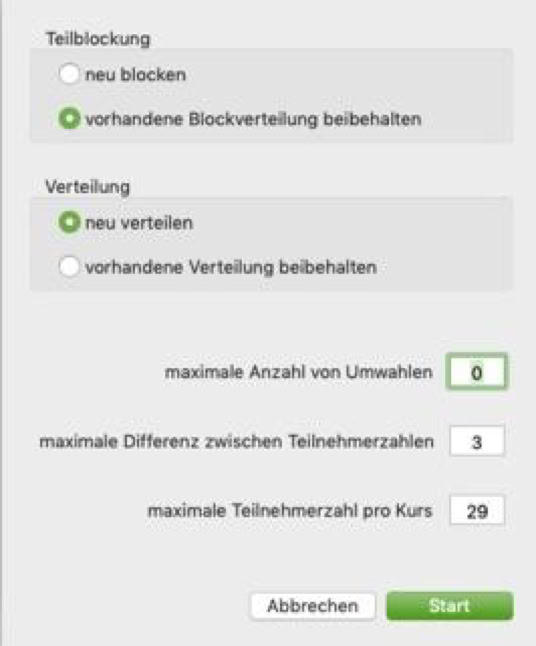 Sie können die vorhandene Blockung beibehalten und mit der nur die Schüler auf die Kurse verteilen lassen.