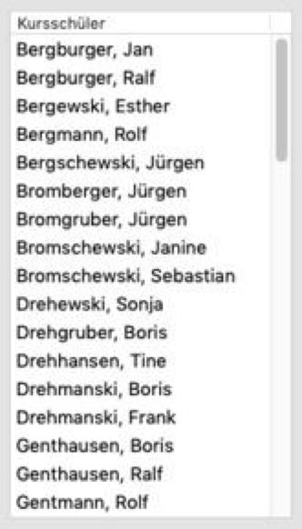 Wenn Sie nach der Verteilung eine Kursgruppe in der Kursgruppenliste aufklappen und dort einen Kurs auswählen, werden ihnen die Kursschüler angezeigt.