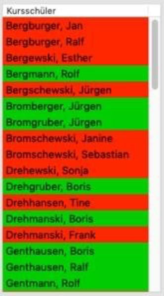 Die grün unterlegten Schüler befinden sich in dem Kurs und die rot unterlegten in einem der anderen Kurse.