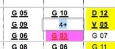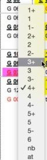 Mit dem Notenwerkzeug geben Sie die Noten über ein Menü ein, das aufklappt, wenn Sie auf das entsprechende Feld klicken. Wenn Sie beim Klick auf einen Kurs die Optionstaste (ALT-Taste) drücken, wird die eingetragene Note gelöscht.