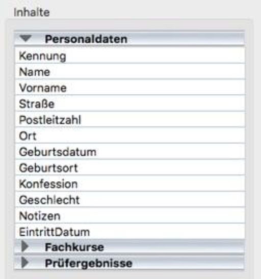 Wenn Sie einen Baustein auswählen, sehen Sie die Eintragungen zu diesem Baustein und können diese ändern.