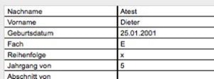 Hier wurden zum Beispiel aus der obigen Importdatei die Felder „Jahrgang“ und „Abschnitt“ verwendet.
