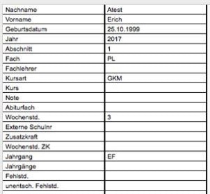 Der Schlüssel „Name, Vorname“ ist als Unterscheidungsmerkmal zwischen verschiedenen Schülern nicht so sehr geeignet, weil es durchaus zwei verschiedene Schüler gleichen Namens geben kann. Dennoch kann es Importdaten geben, in denen nur diese Schlüsselwerte zur Verfügung stehen.