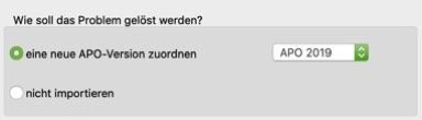 Wenn importierte Schüler*innen eine APO-GOSt benötigen, die in der Hauptdatei nicht vorgesehen ist, muss entschieden werden, ob diesen Schüler*innen eine andere APO-Version zugewiesen oder ob sie nicht importiert werden sollen. Unter normalen Umständen wird dieser Fall allerdings nicht auftreten, weil die APO-Dateien so aufgebaut sind, dass sie alle Importfälle berücksichtigen.