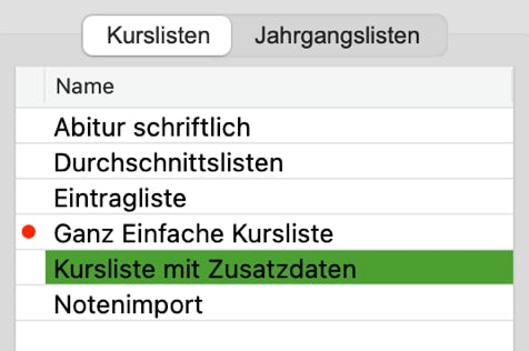Mit Hilfe des Listen-Editors können Sie selbst Vorlagen für Kurslisten oder Jahrgangslisten erstellen.