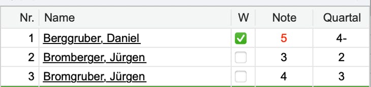 In diesem Beispiel sind fünf Eintragungen für die Schülerinnen und Schüler in der Liste vorgesehen.