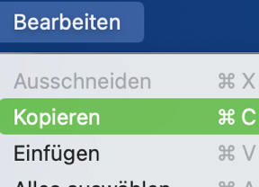 Einzelne oder alle Zeilen der Kursliste können Sie auswählen, um sie dann über das Bearbeiten-Menue in die Zwischenablage zu kopieren.