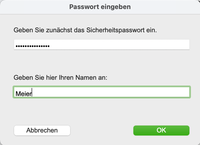 Falls in der Konfigurationsdatei nur eine Kursliste mit den Namen der Schülerinnen und Schüler übermittelt wird und Sie keine Daten an die Schule senden sollen, werden Sie nur nach dem Passwort gefragt.