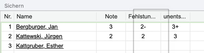 Alle Eintragungen werden vom Programm überprüft, falsche Noten oder fehlerhafte Eintragungen bei den Fehlstunden werden zurückgewiesen.