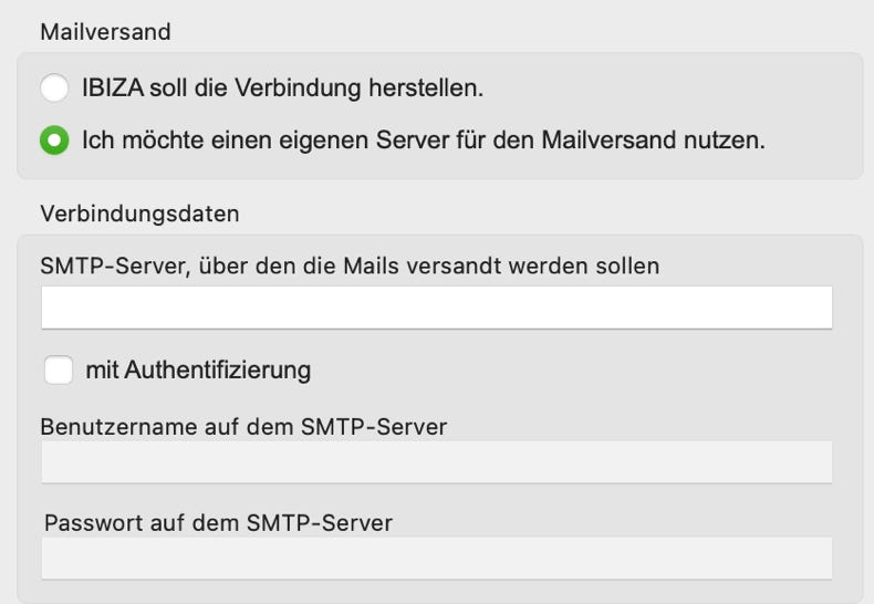 Wenn Daten an die angegebene Mailadresse verschickt werden sollen, benötigt das Programm IBIZANoten einen SMTP-Server.