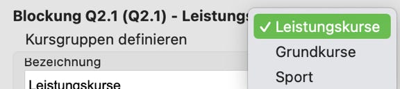 Die Anzahl der Blöcke gibt an, in wieviel Blöcken Kurse dieser Kursgruppe vorkommen sollen.