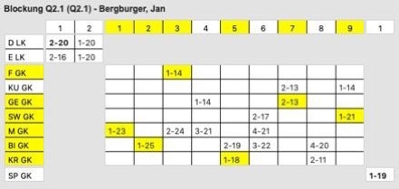In diesem Beispiel sieht man einen Verteilungsversuch. Die gewählten Kurse sind gelb dargestellt.