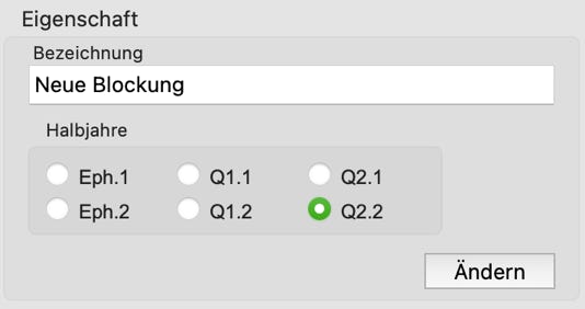 Der grüne Punkt vor dem Namen zeigt an, dass Sie diese Blockung als aktuelle Blockung für das angegebene Halbjahr ausgewählt haben.
