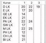 Die manuelle Verteilung verwendet man häufig, wenn Kernkurse in der Einführungsphase gebildet werden. Dabei werden Schülerinnen und Schüler manuell z.B. auf die Deutschkurse verteilt und man möchte diese Verteilung auch auf die Mathematik- und Englischkurse übertragen.
