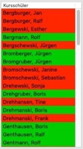Durch Anklicken eines grün unterlegten Schülers können Sie ihn aus dem Kurs entfernen. Er erscheint dann weiß unterlegt.
