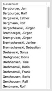 Wenn Sie nach der Verteilung eine Kursgruppe in der Kursgruppenliste aufklappen und dort einen Kurs auswählen, werden ihnen die Kursschüler angezeigt.