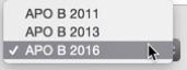 Zur Auswahl der individuellen APO-GOSt werden in dem Auswahlmenü die APO-GOSts angezeigt, die sich in der APO-Datei befinden, die Sie zu Beginn der Datei zugeordnet haben.