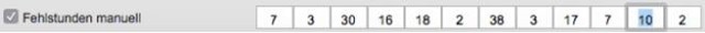 Häufig ist es notwendig, diese hier addierten Fehlstunden zu korrigieren. Auch das ist möglich. Sie aktivieren die Checkbox „Fehlstunden manuell“ und können dann eigene Summen eintragen.