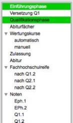 Auf der Registerkarte „Prüfen“ können Sie alle Prüfungen für die Schülerin bzw. den Schüler durchführen, die in der APO-Datei vorgesehen sind. Dabei orientieren sich die Ergebnisse natürlich an der individuell für den Schüler ausgewählten APO-GOSt.