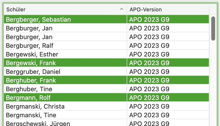 Hier haben Sie die Möglichkeit, diese Zuordnung für mehrere Schüler gleichzeitig zu ändern. Sie wählen die Schüler*innen in der Schülerliste aus und wählen aus dem Menü die gewünschte APO-GOSt.