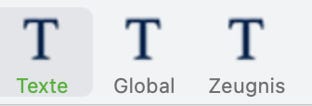 Globale Bausteine sind für alle Schüler*innen identisch. Sie legen hier fest, welche globalen Textbau- steine es geben soll und mit welchen Inhalten sie belegt sein sollen. Auch hier müssen die Namen der Bausteine eindeutig sein.